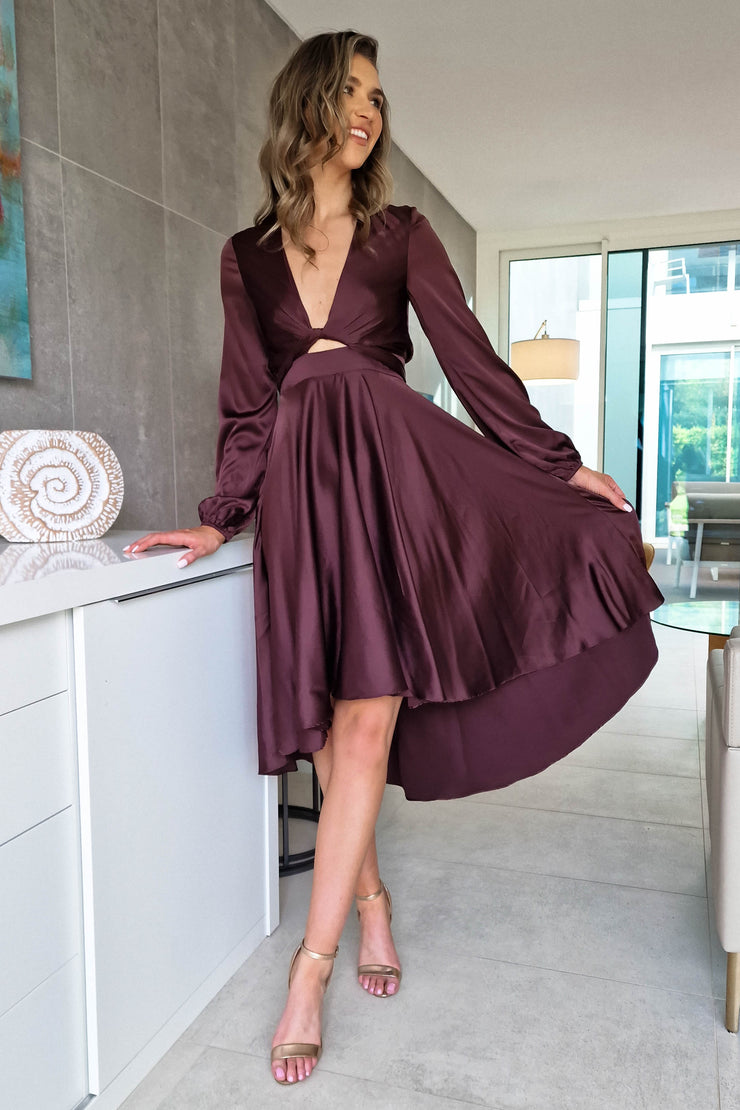 Nicola Satin Tie Front Midi Dress | Chocolate