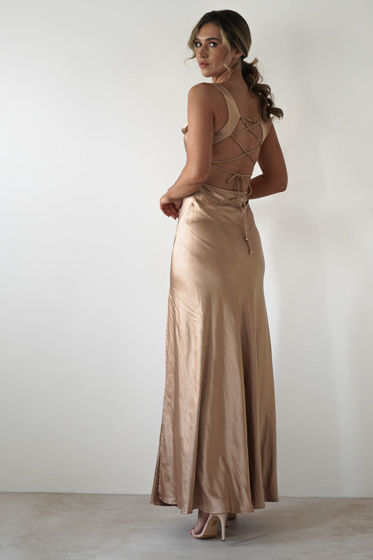 Riviera Soft Satin Maxi Gown | Gold/Bronze