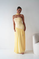 Elva Strapless Asymmetric Waist Maxi Dress | Yellow